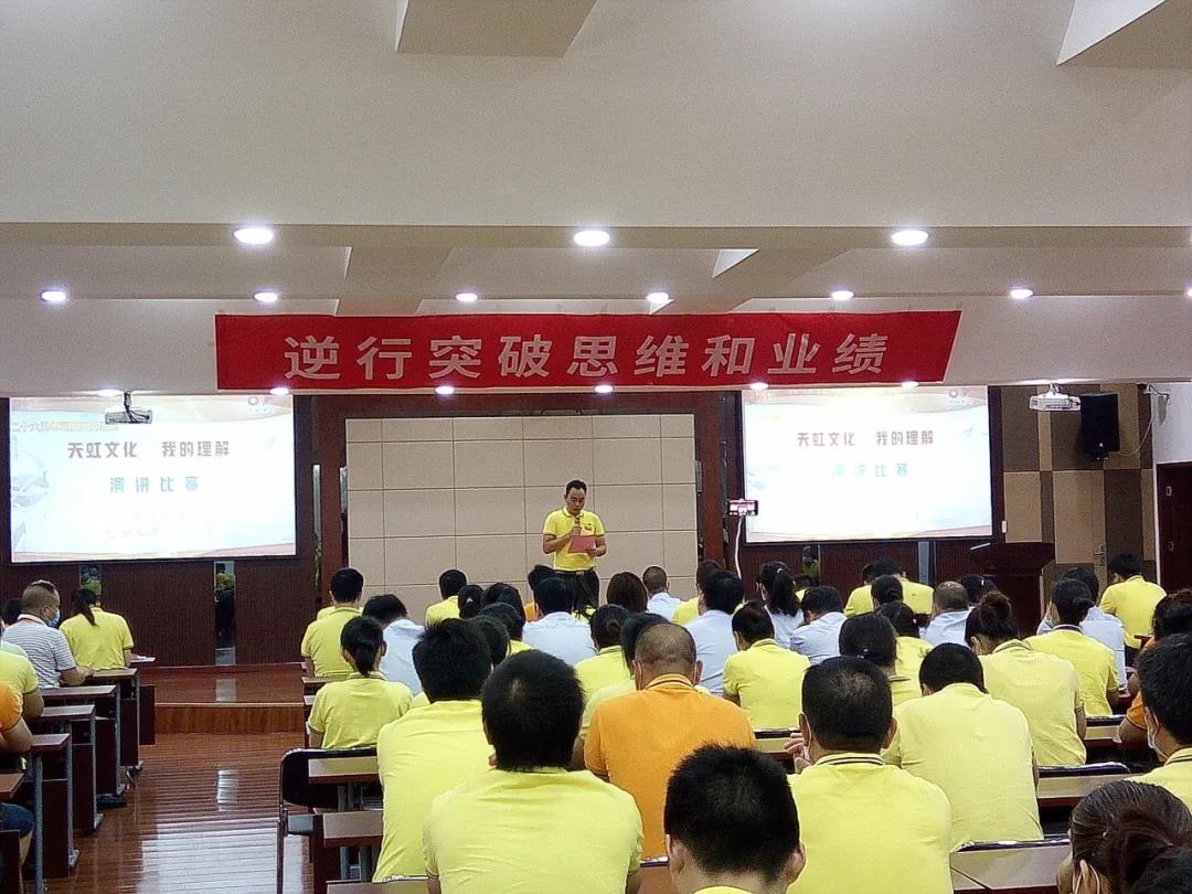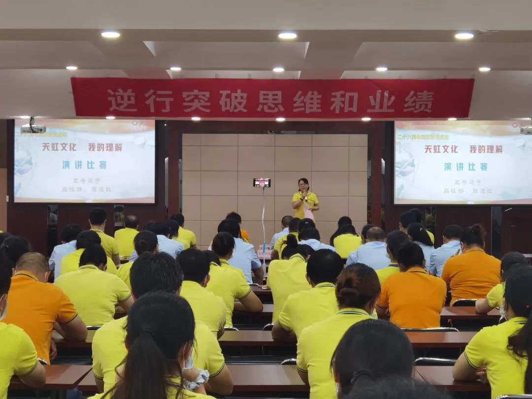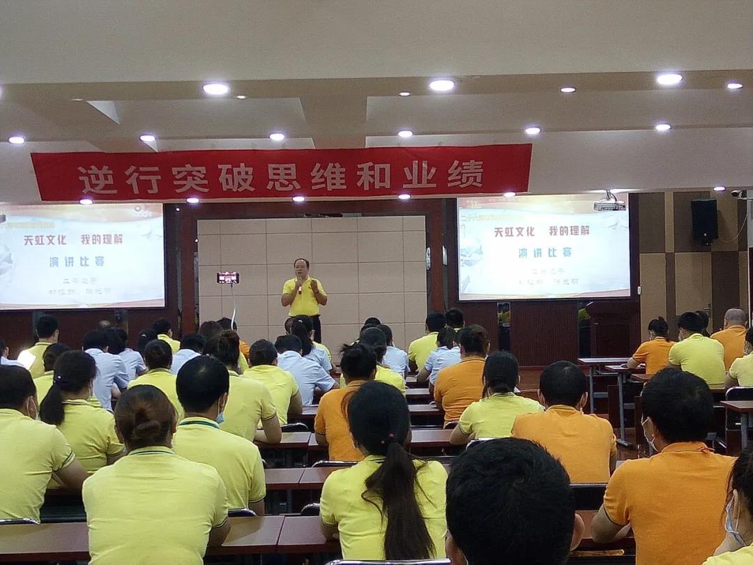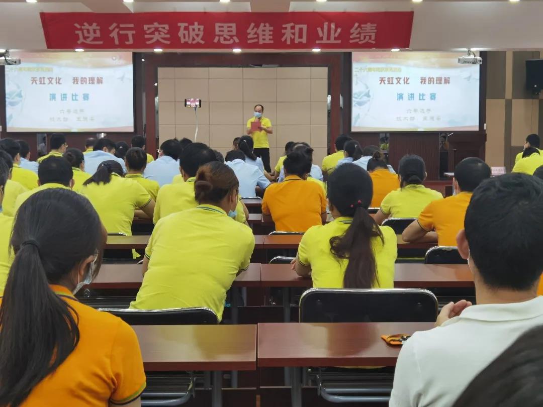 為了進(jìn)一步弘揚和傳承公司“三個三”文化精神,讓“三個三”文化生根在員工心中,落地在公司的發(fā)展中,踐行在每名員工的行動中,同時也為員工搭建展示才華的舞臺,不斷充分挖掘員工的潛質(zhì),培養(yǎng)有激情、有活力的天虹人。8月3日,在公司26周年司慶來臨之際,開展“天虹文化,我的理解”演講比賽。