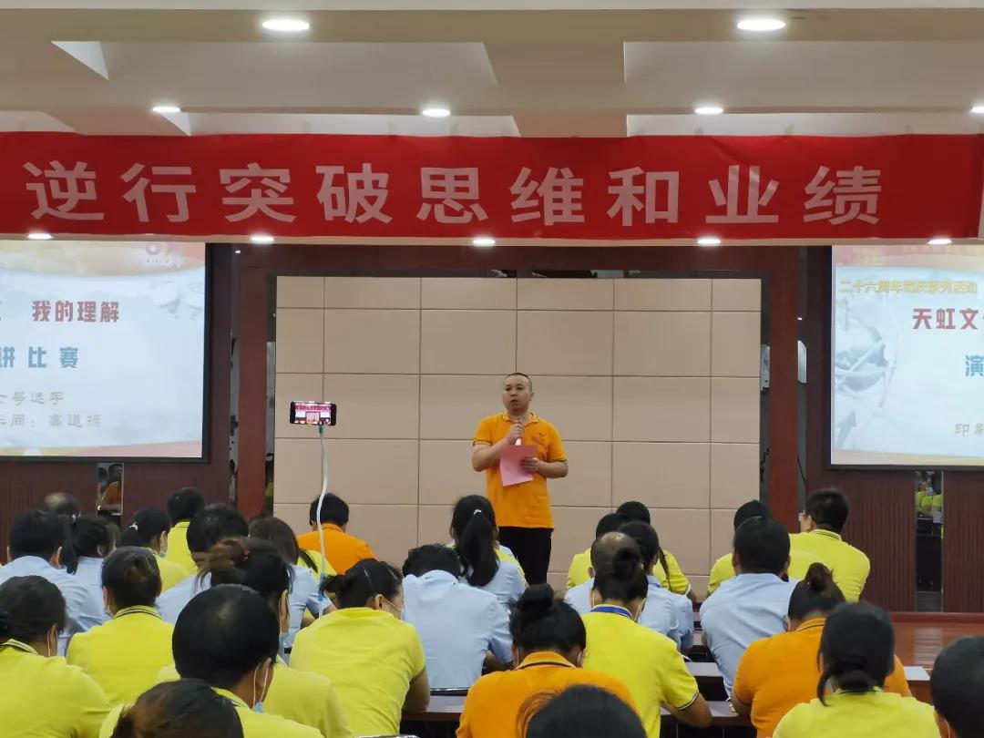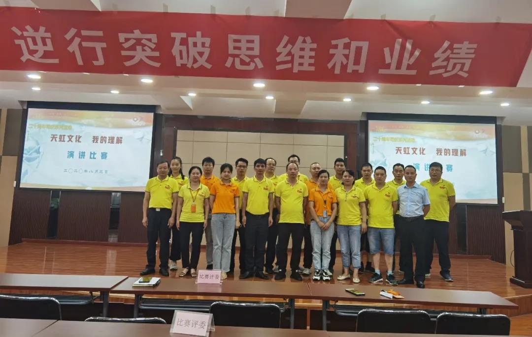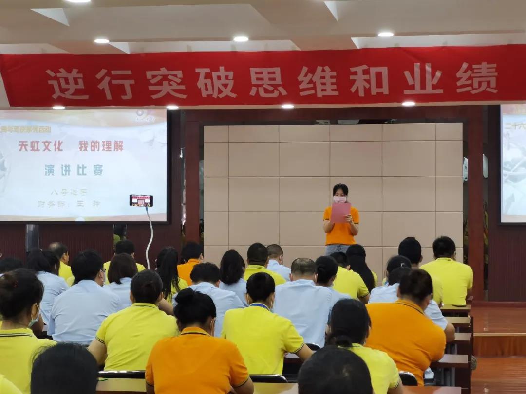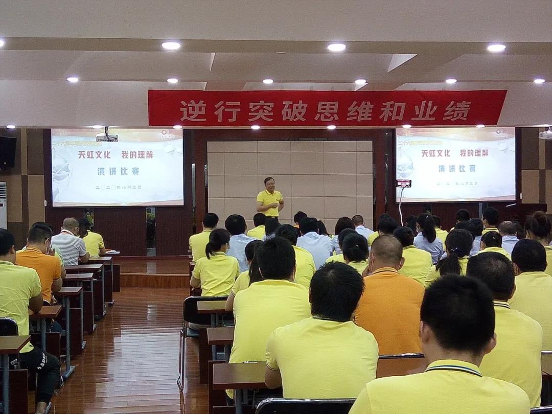 為了進(jìn)一步弘揚和傳承公司“三個三”文化精神,讓“三個三”文化生根在員工心中,落地在公司的發(fā)展中,踐行在每名員工的行動中,同時也為員工搭建展示才華的舞臺,不斷充分挖掘員工的潛質(zhì),培養(yǎng)有激情、有活力的天虹人。8月3日,在公司26周年司慶來臨之際,開展“天虹文化,我的理解”演講比賽。