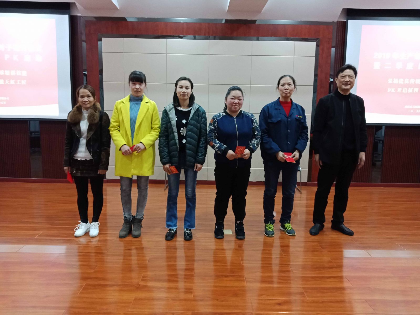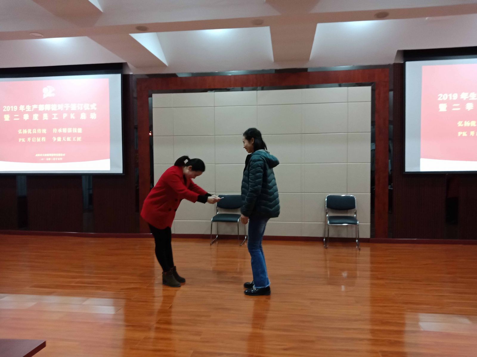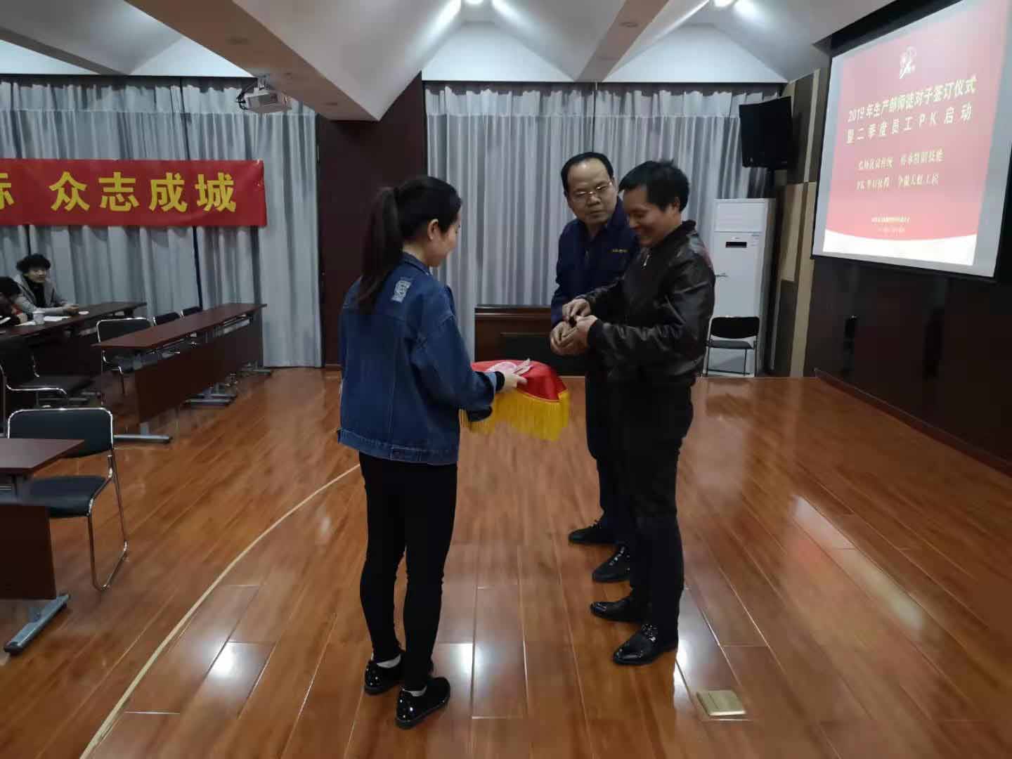 拜師的香茶仍溫,莊嚴的承諾余音繞梁,主持人緊接著又宣布2018年第四季度員工PK兌現和2019年第二季度員工PK啟動。員工PK是自2018年第四季度開始舉辦,旨在將產品品質、產出率、節能降耗等生產目標通過員工間、班組間進行PK的形式進行提升和達成。