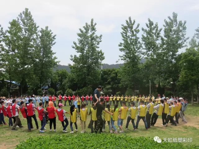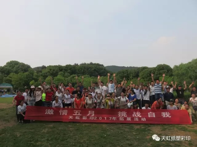 激情五月,挑戰自我,5月14日,天虹彩印公司組織員工進行了團建拓展活動。活動在風景秀麗的九真山風景區拉開序幕,在教練的帶領下,所有團隊成員開展了破冰分組、動感擊球、團隊圣塔、動力圈繩四個拓展項目。